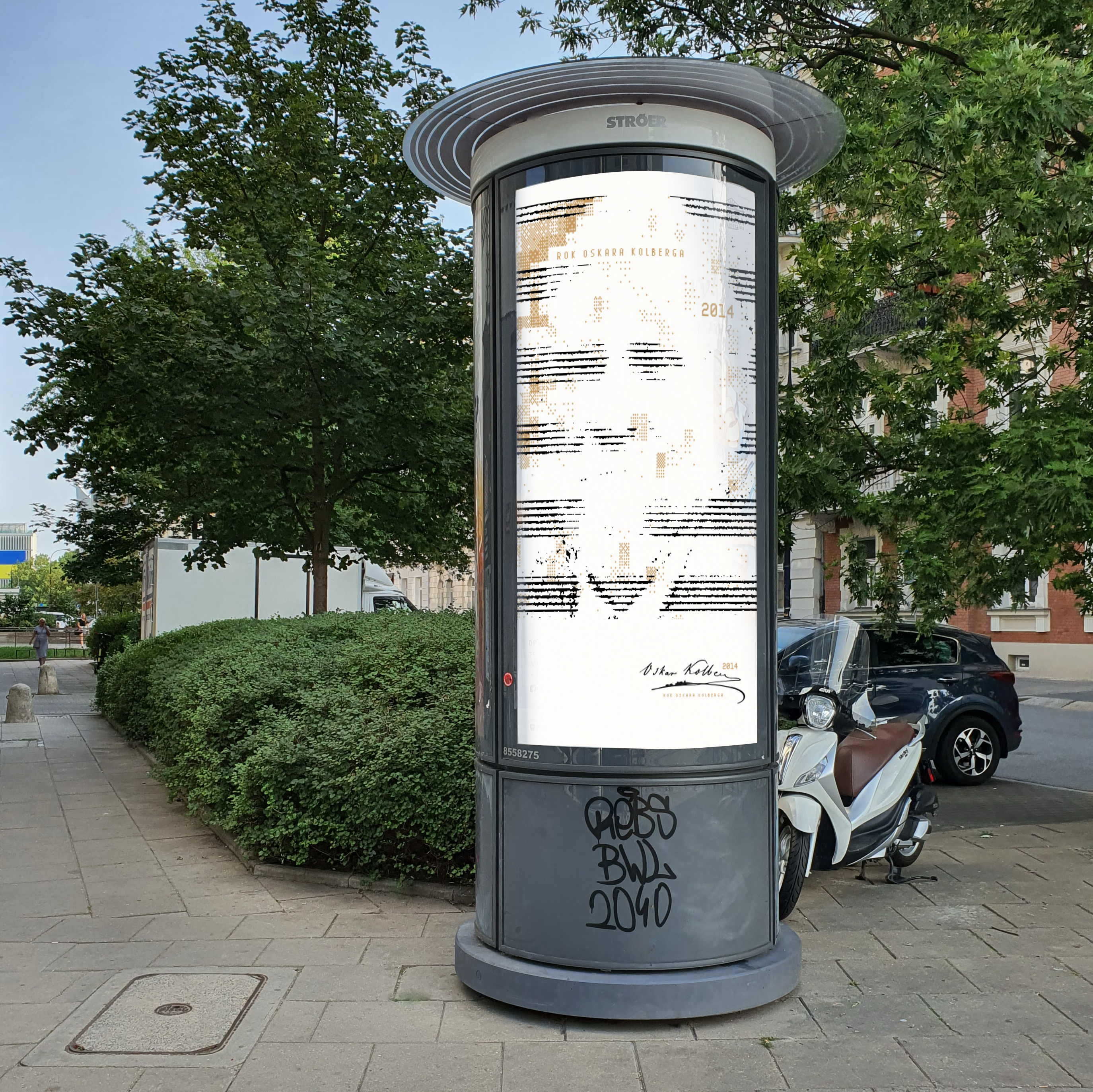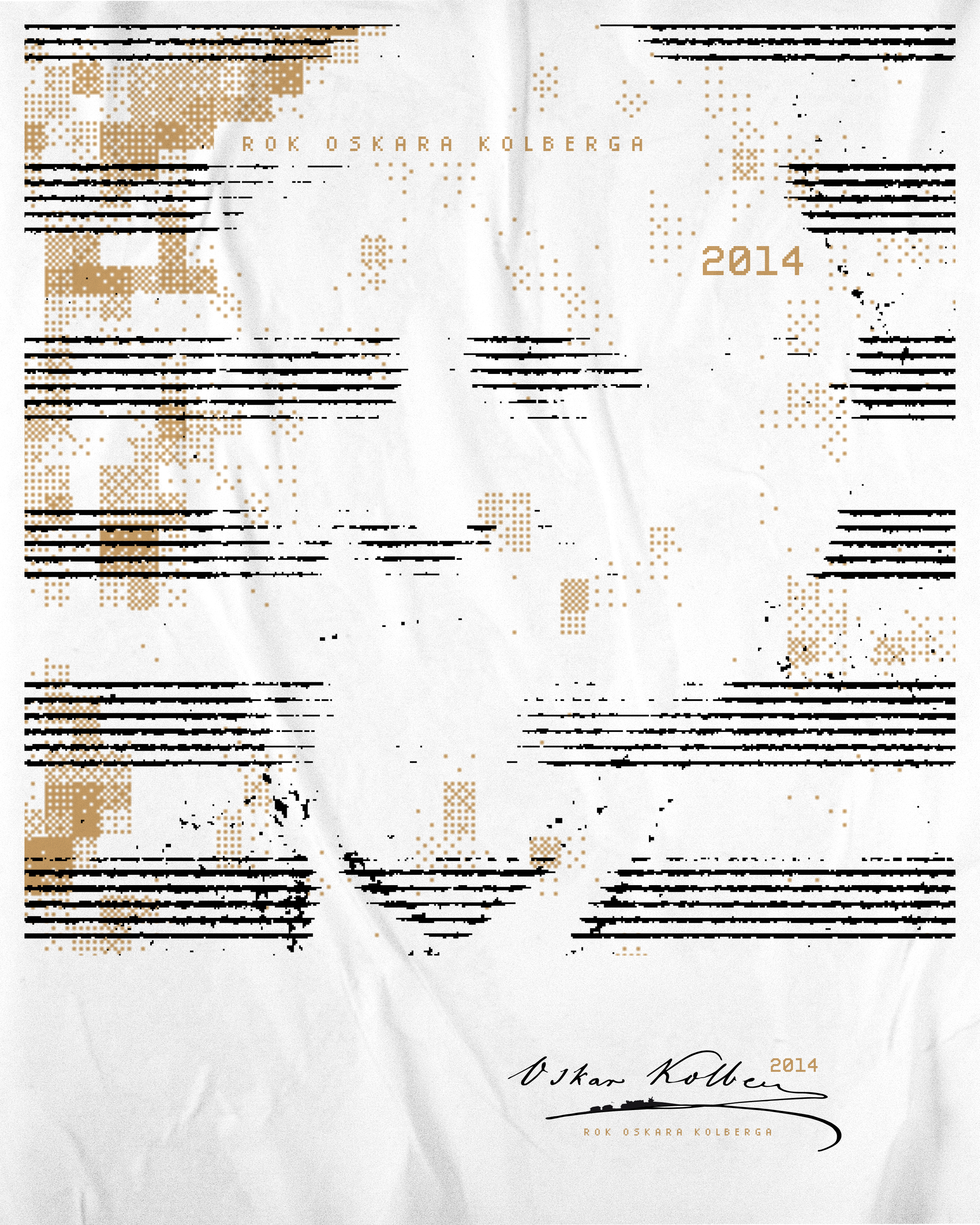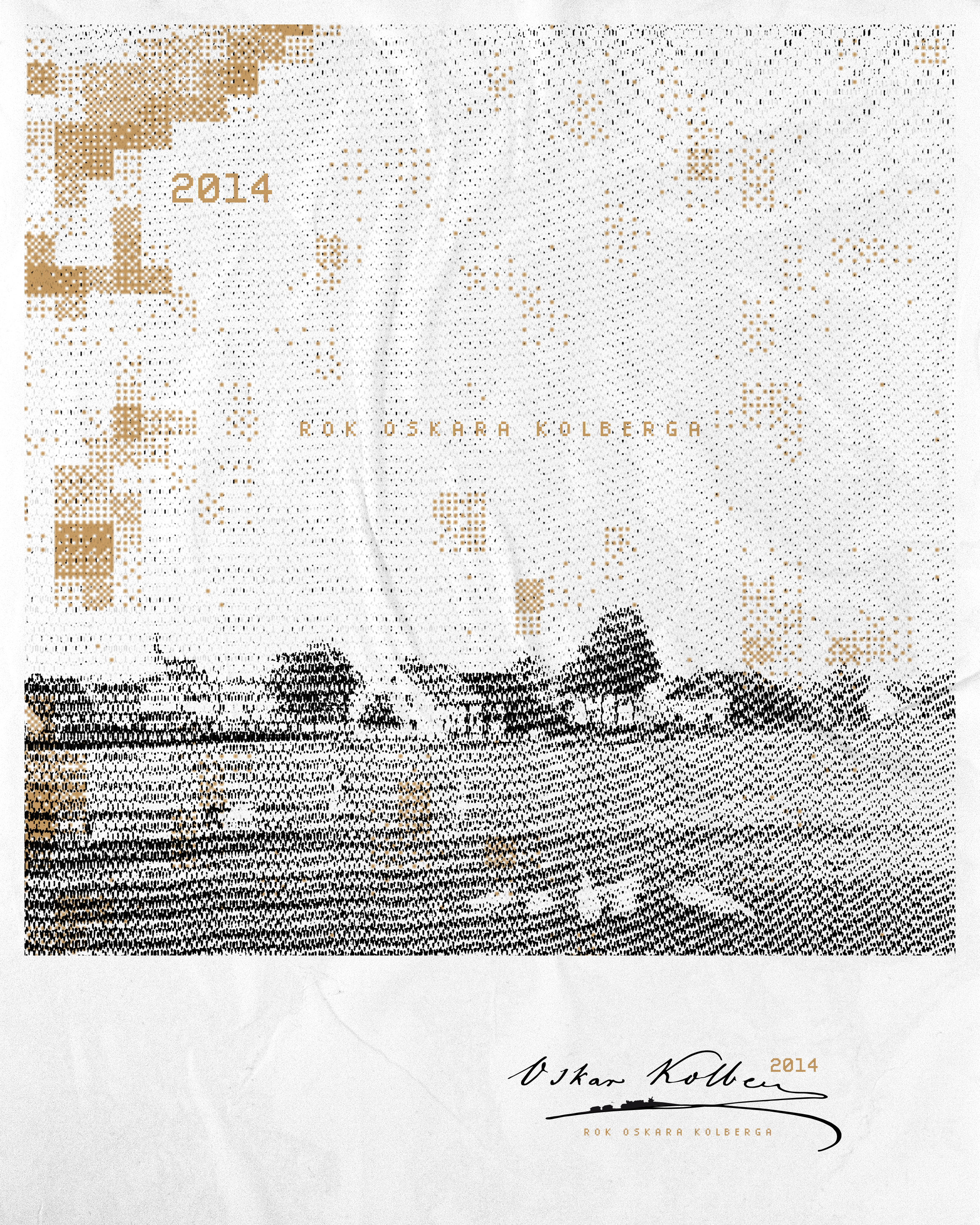 Oskar Kolberg, whose main field of activity was ethnography, describing and documenting with great care the life of the Polish countryside deserves special treatment, therefore the Sejm of the Republic of Poland declared 2014 the Year of Oskar Kolberg. For this reason, a graphic symbol was created to identify the anniversary celebrations.The construction of the proposed symbol for the jubilee year of Oskar Kolberg 2014 is based on the handwritten signature of the documentalist. The authentic signature of the ethnographer is an expression of his personality, character traits, style and temperament. In the characteristic stroke of the pen, one can see many images, the beginning and end of written history. In the stain of the ink spreading on the structure of the paper, a contour image of the horizon from the Polish countryside, so dear to the author, was incorporated.In this way, thanks to a small intervention, we received a clear, characteristic and natural symbol that we can read in many layers. Documenting with respect, we have preserved what is most important – the “Kolberg engraving” with the entire content of the autograph, which, provided only with the modern ordinal number “2014”, has gained a digital date stamp. The technical number, contrasting with the handwritten, soft shape of the signature, has become a symbol of modernity in this combination, a machine mark, with which we today provide archival documents.